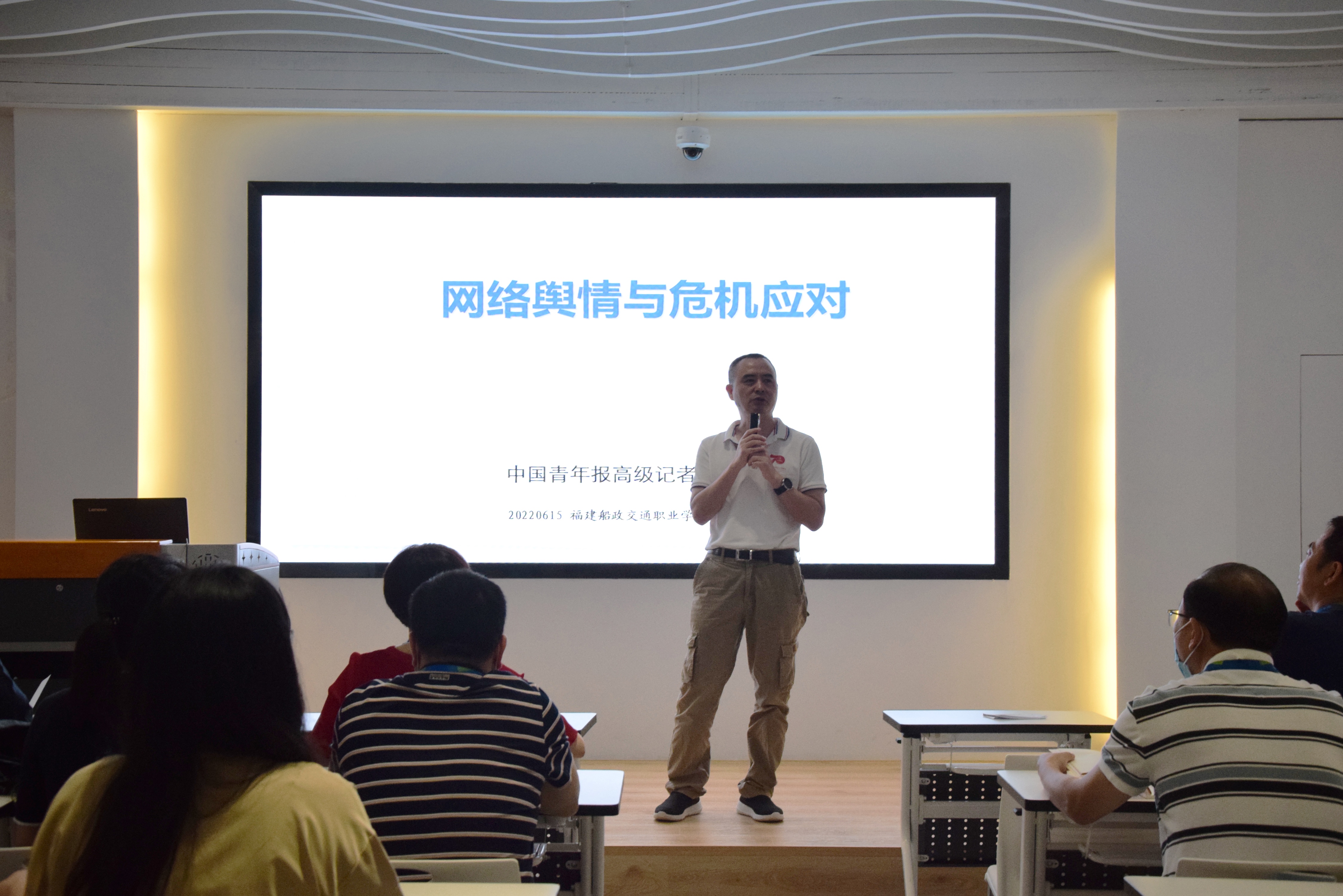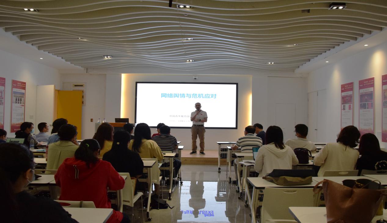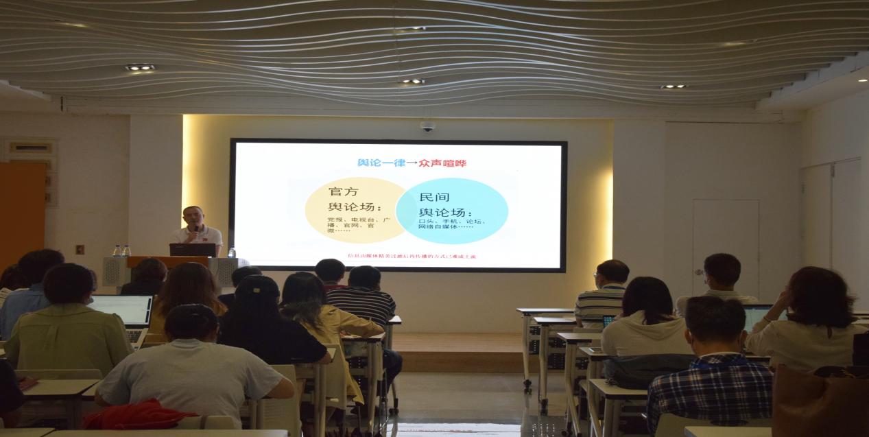 為深入學(xué)習(xí)貫徹習(xí)近平總書記關(guān)于宣傳思想工作的重要思想,嚴(yán)格落實(shí)意識形態(tài)工作責(zé)任制,進(jìn)一步提升我院教師媒介素養(yǎng)和輿情處置能力,6月15日上午,我院舉辦意識形態(tài)工作專題培訓(xùn),《中國青年報(bào)》高級記者陳強(qiáng)應(yīng)邀作題為《網(wǎng)絡(luò)輿情與危機(jī)應(yīng)對》專題授課。院黨政領(lǐng)導(dǎo)班子、教研室主任、支部委員、部分專任教師、全體輔導(dǎo)員參加此次培訓(xùn)。培訓(xùn)由黨總支副書記林麗萍主持。