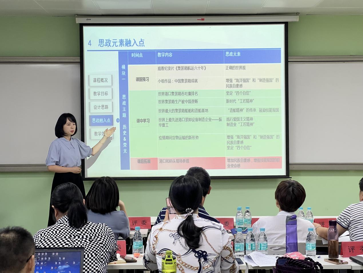 本次大賽分為說課和片段教學(xué)演示兩部分,比賽中,各參賽教師結(jié)合自己的專業(yè)特色,深入挖掘?qū)I(yè)課程中蘊含的思政元素,把思想政治教育有機地融入到課堂教學(xué)中,既展示了各具特色的教學(xué)風(fēng)采,又春風(fēng)化雨、潤物無聲地滌蕩了學(xué)生心靈。比賽精彩紛呈,參賽教師全身心投入,一個個精彩的瞬間博得了陣陣掌聲。經(jīng)過激烈的角逐,最終關(guān)務(wù)與外貿(mào)服務(wù)專業(yè)陳宇老師以科學(xué)嚴(yán)謹(jǐn)?shù)慕虒W(xué)設(shè)計,潤物無聲的思政融入,自然流暢的片段教學(xué)展示,贏得了評委和老師們的一致好評,榮獲2022年課程思政教學(xué)能力比賽一等獎(具體獲獎名單附后)。