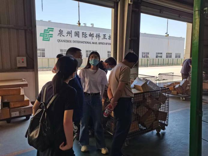 俞素平書記一行先后走訪觀看了晉江陸地港集裝箱堆場、國際供應鏈倉庫、陸地港國際營運中心、泉州國際快件監(jiān)管中心、泉州國際郵件互換局等項目,詳細了解跨境業(yè)務、甩掛運輸、通路資源整合等運作模式及經(jīng)營情況。