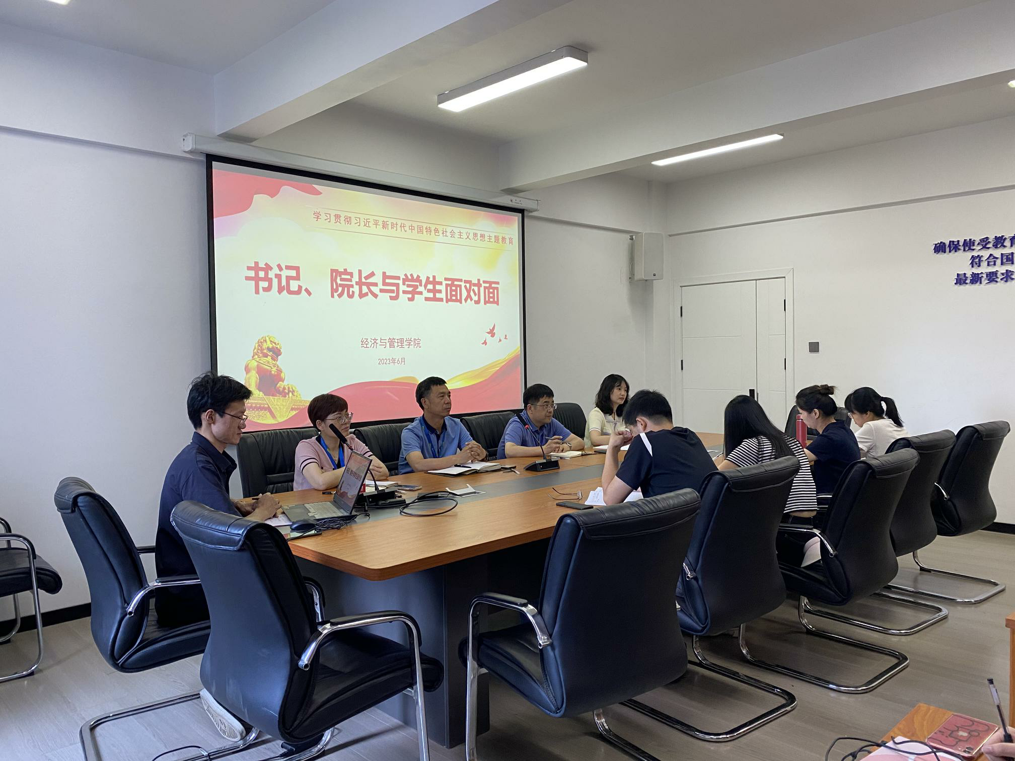 為推進(jìn)學(xué)習(xí)貫徹習(xí)近平新時(shí)代中國(guó)特色社會(huì)主義思想主題教育走深走實(shí),關(guān)心學(xué)生成長(zhǎng)成才,聽(tīng)取畢業(yè)生對(duì)學(xué)校、學(xué)院發(fā)展的意見(jiàn)和建議,6月12日上午,經(jīng)濟(jì)與管理學(xué)院在航海樓三樓會(huì)議室召開(kāi)書(shū)記、院長(zhǎng)與學(xué)生面對(duì)面之2023屆畢業(yè)生座談會(huì)。黨總支書(shū)記俞素平、院長(zhǎng)房曰榮、黨總支副書(shū)記林麗萍、分團(tuán)委書(shū)記傅一丹、畢業(yè)班輔導(dǎo)員以及2023屆各班畢業(yè)生代表參加了此次座談會(huì)。
