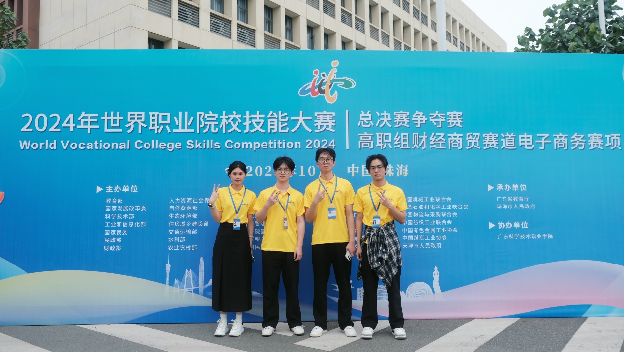 10月26日-10月28日,2024年世界職業(yè)院校技能大賽總決賽爭奪賽高職組財經(jīng)商貿(mào)賽道電子商務賽項在廣東科學技術(shù)職業(yè)學院開賽。該賽項吸引了全國高職院校63支隊伍252名選手同臺競技。我院由經(jīng)濟與管理學院院長房曰榮(領(lǐng)隊),林麗萍、方思兩位指導老師及胡慧武、馮晉、林祉龍、吳瓊四位同學組成的參賽團隊參賽,并在總決賽中喜獲金獎。