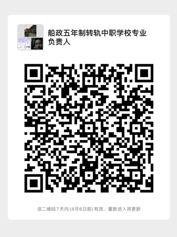 請(qǐng)各合作中職學(xué)校負(fù)責(zé)機(jī)房安裝的技術(shù)老師4月6日前加入微信群“船政五年制轉(zhuǎn)軌考核技術(shù)群”(圖一),各合作中職學(xué)校專業(yè)負(fù)責(zé)人4月6日前加入微信群“船政五年制轉(zhuǎn)軌中職學(xué)校專業(yè)負(fù)責(zé)人群”(圖二)。
