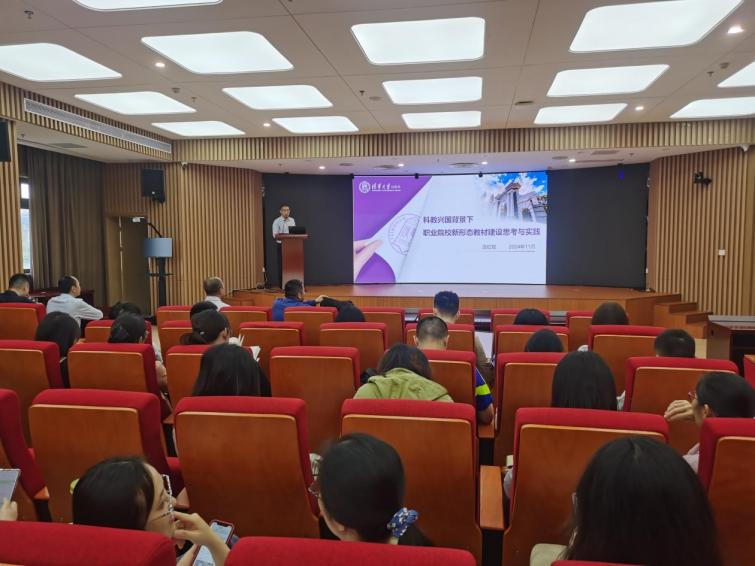 為持續(xù)推進(jìn)數(shù)字教材建設(shè)工作,提升教師數(shù)字教材建設(shè)能力,推進(jìn)學(xué)校教材建設(shè)高質(zhì)量發(fā)展,2024年11月13日上午,我校在福船園藝新樓334報(bào)告廳舉辦數(shù)字教材建設(shè)專題講座,特邀清華大學(xué)出版社副社長(zhǎng)莊紅權(quán)作題為“科教興國(guó)背景下職業(yè)院校新形態(tài)教材建設(shè)思考與實(shí)踐”的報(bào)告。教務(wù)處、規(guī)劃教材主編或團(tuán)隊(duì)成員代表共60多人參會(huì)。