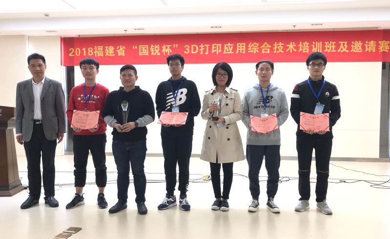 2018年11月17日,福建省“國銳杯”3D打印應(yīng)用綜合技術(shù)邀請賽在中國科學(xué)院海西研究院福建省增材制造創(chuàng)新中心舉行,我系教師胡星曄、學(xué)生陳镕良、洪藝?yán)⒓颖荣惒⑾搏@一等獎。