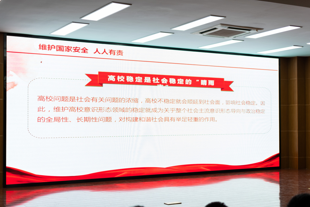 褚紅云副教授作為福建省公安廳國內(nèi)安全保衛(wèi)教育訓(xùn)練基地主任、福建省法學(xué)會國家安全法學(xué)研究會理事、公安部國內(nèi)安全保衛(wèi)局特聘教官,具有扎實的理論積淀和豐富的辦案經(jīng)驗。她從維護(hù)國家安全人人有責(zé)這個大格局中,選取了高校安全和國家安全這個小視角進(jìn)行剖析解讀?!案咝7€(wěn)定是社會穩(wěn)定的晴雨表”,褚教授通過發(fā)生在校園中,發(fā)生在高校學(xué)者、青年學(xué)生身上的境外滲透、宗教活動、互聯(lián)網(wǎng)犯罪等真實案例,具象生動的闡釋了高校中存在的國家安全風(fēng)險、兩者之間的關(guān)系及高校的應(yīng)對建議。引導(dǎo)船政學(xué)子將愛國熱情轉(zhuǎn)換為愛國智慧,將報國情懷踐行為報國行動,為守衛(wèi)國家的長治久安,維護(hù)校園的安定穩(wěn)定貢獻(xiàn)青年學(xué)子的智慧和力量。