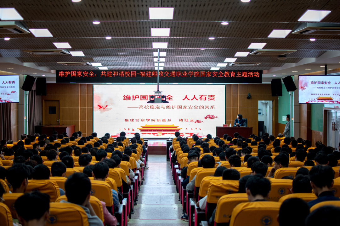 黨的十九大報告指出:“國家安全是安邦定國的重要基石,維護(hù)國家安全是全國各族人民根本利益所在。” 維護(hù)國家安全,不僅需要強大的經(jīng)濟(jì)實力、軍事實力等“硬實力”,還需要國民具有良好的國家安全意識、國家安全素養(yǎng)等“軟實力”。為了進(jìn)一步提升青年學(xué)子的國家安全意識,增強國家安全素養(yǎng),福建船政交通職業(yè)學(xué)院于2019年4月18日晚7點特別邀請福建警察學(xué)院褚紅云副教授在6樓報告廳舉辦《維護(hù)國家安全人人有責(zé)——高校安全與國家安全關(guān)系》的專題講座,機(jī)械工程系350名師生參加了本次活動。
