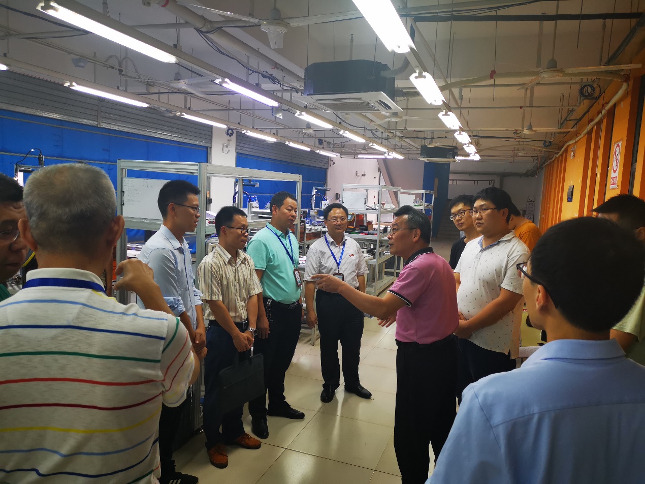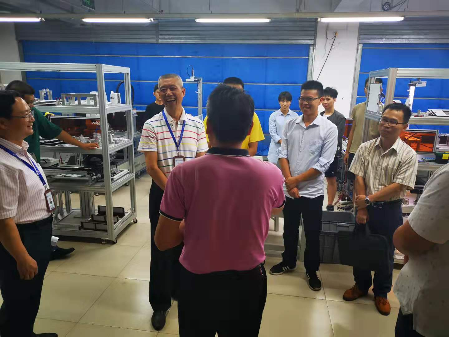2019年10月14日下午,福建省工業(yè)和信息化廳陳庚處長(zhǎng)、顏真楠主任一行蒞臨我院指導(dǎo)第三屆全國(guó)工業(yè)機(jī)器人技術(shù)應(yīng)用技能大賽福建代表隊(duì)集訓(xùn)。學(xué)院黨委書(shū)記張海明、院長(zhǎng)陳錦輝與陳庚處長(zhǎng)一同來(lái)到集訓(xùn)現(xiàn)場(chǎng)檢查訓(xùn)練工作,詳細(xì)了解了集訓(xùn)工作的計(jì)劃、具體進(jìn)度安排和備賽情況,逐一查看了設(shè)備狀況、程序調(diào)試、機(jī)器人試運(yùn)行、安裝與維護(hù)等備賽環(huán)節(jié),與教練指導(dǎo)團(tuán)隊(duì)、集訓(xùn)隊(duì)員進(jìn)行了親切交談。在聽(tīng)取了全面匯報(bào)后,陳庚處長(zhǎng)對(duì)本次集訓(xùn)工作給予了充分肯定,要求教練團(tuán)隊(duì)再接再厲,以踏石留痕、久久為功的精神,全力以赴做好競(jìng)賽準(zhǔn)備工作;勉勵(lì)集訓(xùn)隊(duì)員們刻苦訓(xùn)練,練好本領(lǐng),賽出風(fēng)格、賽出水平,為福建代表隊(duì)爭(zhēng)光添彩。張海明書(shū)記、陳錦輝院長(zhǎng)對(duì)本次集訓(xùn)也給予了高度肯定,要求機(jī)械系和實(shí)訓(xùn)中心全方位做好后勤和服務(wù),為福建代表隊(duì)創(chuàng)造優(yōu)良的訓(xùn)練條件和生活保障。