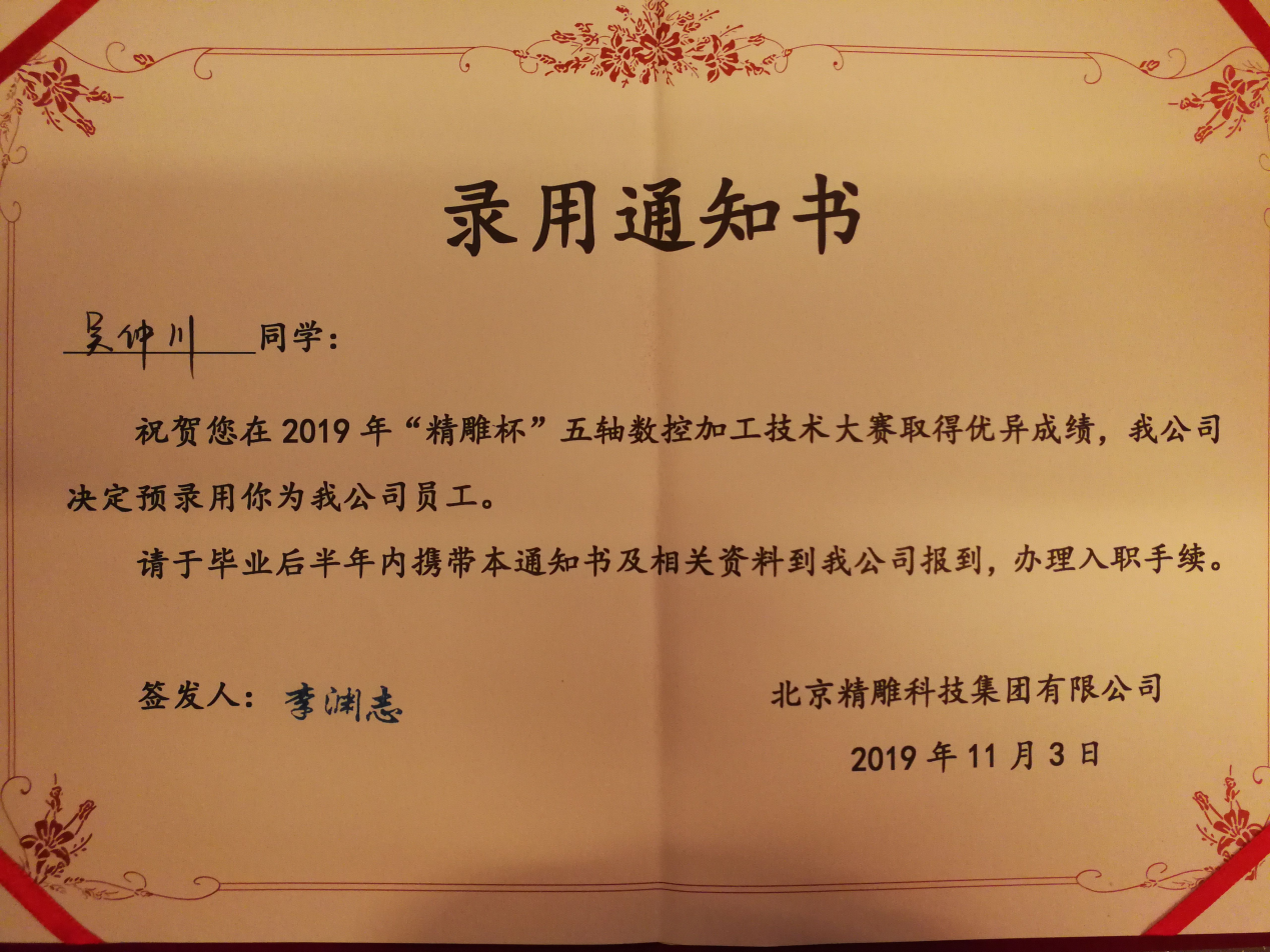 熱烈祝賀吳仲川、魏再煌同學(xué)在2019年度全國五軸數(shù)控