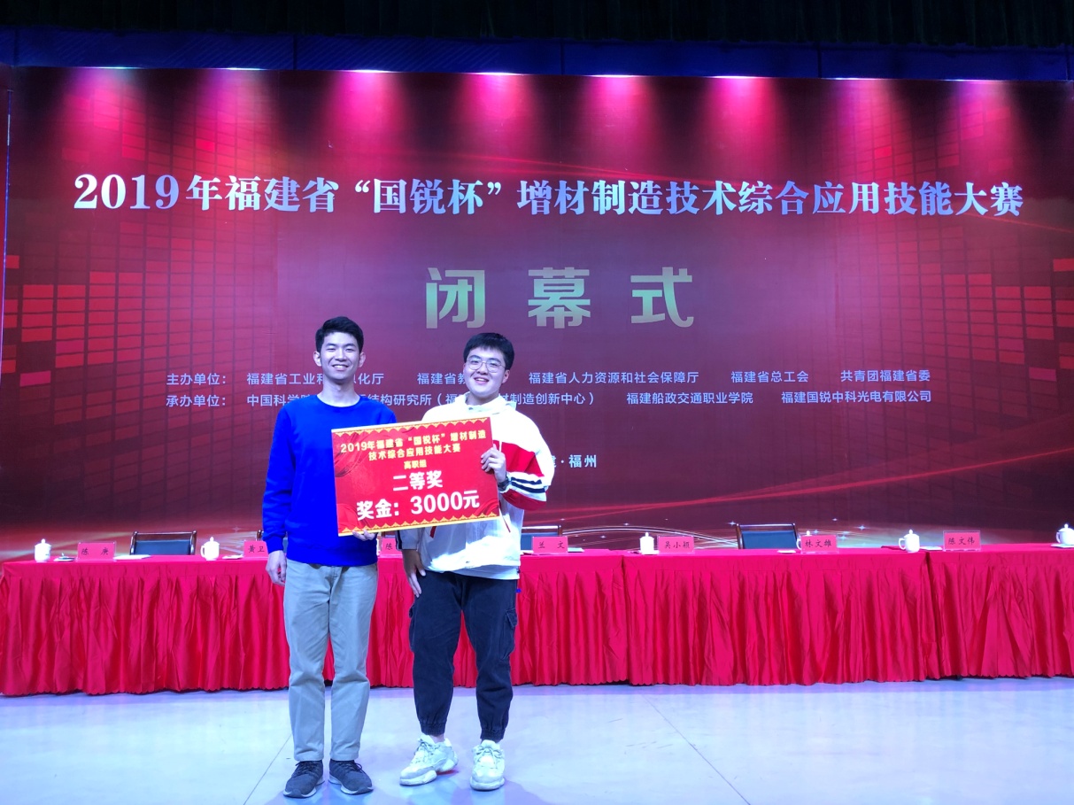由福建省工業(yè)和信息化廳、福建省教育廳、福建省人力資源和社會保障廳、福建省總工會、共青團福建省委主辦,福建船政交通職業(yè)學院、福建國銳中科光電有限公司承辦的2019年福建省“國銳杯”增材制造技術(shù)綜合應(yīng)用技能大賽于2020年1月6日落下帷幕,我系陳太麗老師以第二名的成績,榮獲職工組一等獎;學生組鄭世煌、陳則言(指導老師:謝宇玲)獲得二等獎;魏再煌、吳仲川(指導老師:李云妹)與董謹浩、陳良星(指導老師:謝祖華)分別獲得三等獎。