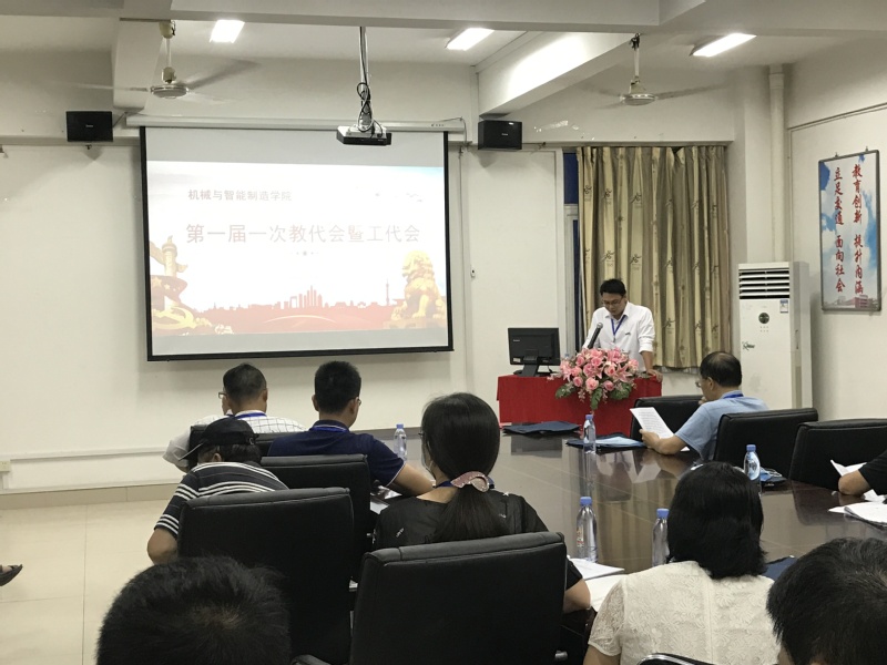 7月28日晚19時,在莊嚴(yán)的國歌聲中,主持人肖秀林副書記宣布機械與智能制造學(xué)院第一屆第一次教代會開幕。教代會的召開是我院廣大職工和工會會員政治生活中的一件大事,是充分發(fā)揮全體職工智慧和凝聚職工力量的一個重要載體。我院全體教職工緊緊圍繞學(xué)校各項中心工作,以主人翁的態(tài)度和飽滿的熱情,積極投入到學(xué)校的各項改革中。今天會議有兩項議程,第一項是選舉第一屆機械與智能制造學(xué)院工會委員,第二項是審議并表決《機械與智能制造學(xué)院崗位責(zé)任獎實施細則(試行)》。
