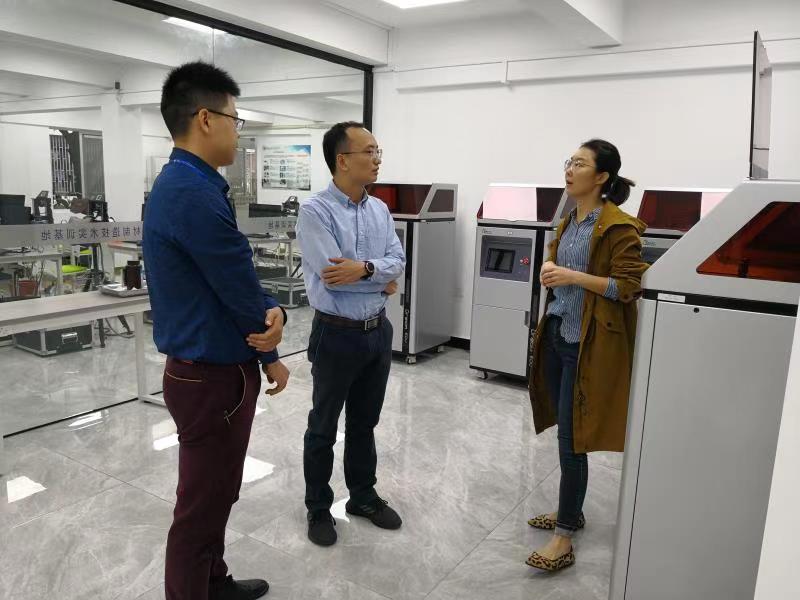 福建幼兒師范高等??茖W(xué)校陳峰校長參觀返校后,立即選派該?,F(xiàn)教中心陳寧華主任、人文系姜平主任帶領(lǐng)相關(guān)專業(yè)教師一行7人于11月23日前來我校參觀學(xué)習(xí),機(jī)械與智能制造學(xué)院王水發(fā)副院長陪同,程艷和鐘燕華老師全程講解。主要介紹了增材制造實(shí)訓(xùn)基地建設(shè)應(yīng)用情況,就如何激發(fā)學(xué)生對(duì)3D打印的興趣,學(xué)生創(chuàng)新意識(shí)的培養(yǎng),創(chuàng)造性思維的啟發(fā)進(jìn)行了深入探討,為福建幼兒師范高等專科學(xué)校擬建相關(guān)實(shí)驗(yàn)室提供了建設(shè)性意見。