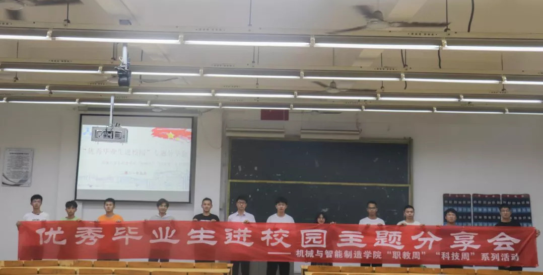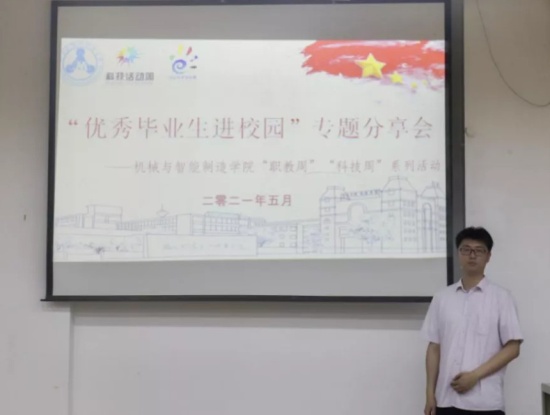 同日,為進一步加強學風建設,調(diào)動學生學習熱情,明確奮斗方向,我院于北區(qū)26號樓605室舉辦 “職教周”“科技周”系列活動之“優(yōu)秀畢業(yè)生進校園主題分享會”,邀請2011級機電一體化專業(yè)畢業(yè)生丁智文與在校學生做分享報告。丁智文從自身求學與工作經(jīng)歷出發(fā),與同學們交流了關于學習和工作的成長心得,會上氣氛熱烈,同學們表示,此次分享會在一定程度上幫助他們找到三年大學生活的方向,引發(fā)了對人生和未來的深度思考,受益良多。
