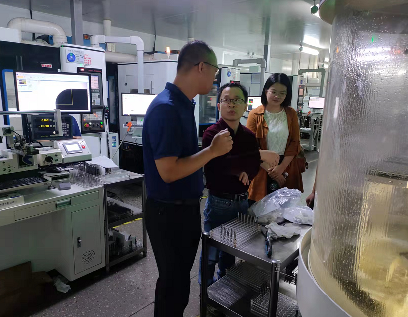 學院一行先后參觀了企業(yè)產(chǎn)品研發(fā)室、生產(chǎn)車間、設備生產(chǎn)組裝車間等,并同企業(yè)代表開展座談交流。會上,校企雙方圍繞開拓就業(yè)渠道和就業(yè)崗位、開展企業(yè)人才需求調(diào)查等方面展開交流,并期望校企雙方能夠加強科學研究、人才培養(yǎng)、學術交流和教學實踐等方面的合作,取得互利共贏的豐碩成果。