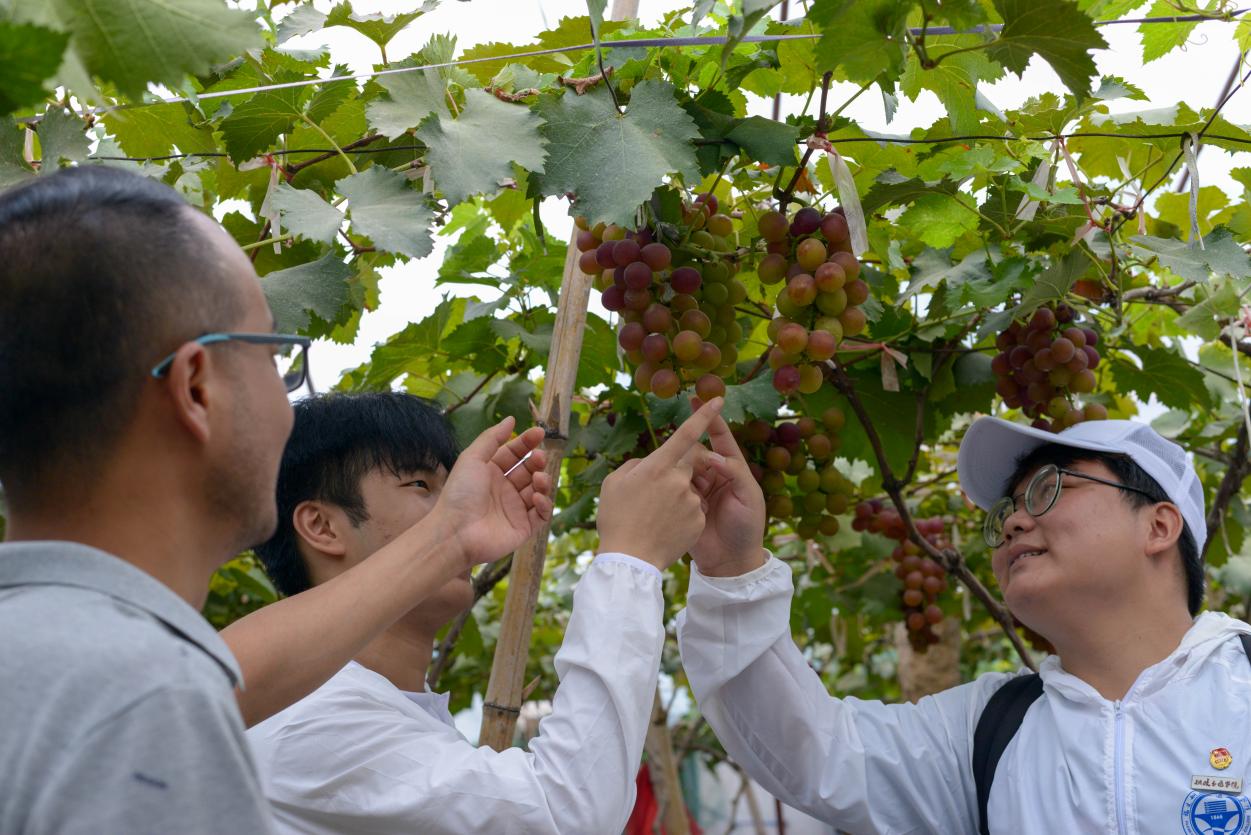 隨后,大家走進(jìn)了荔林水鄉(xiāng)園林,在果園里大家看到了荔枝,文旦柚等經(jīng)濟(jì)作物,陳貴清副院長帶我們下到葡萄棚里去考察,深入了解當(dāng)?shù)胤鲐毘晒?,學(xué)習(xí)當(dāng)?shù)胤鲐毚胧惺芊鲐毑烧獔@助力鄉(xiāng)村振興所發(fā)揮的巨大作用。