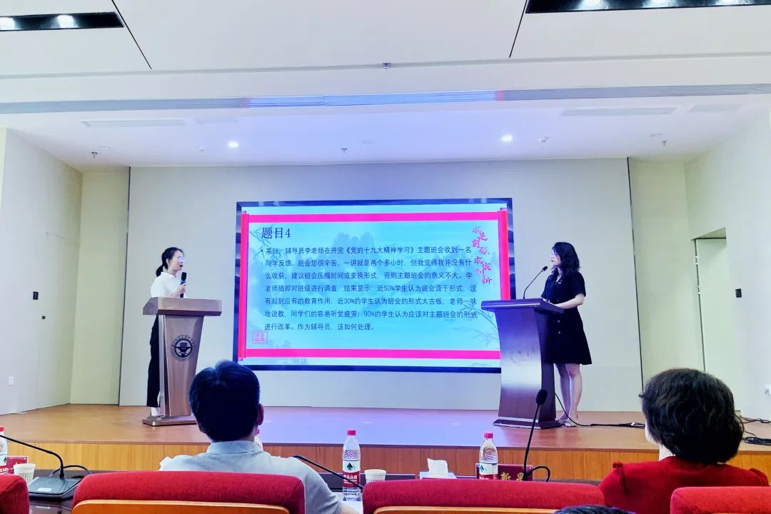 比賽過(guò)程中,各位參賽選手準(zhǔn)備充分、沉穩(wěn)應(yīng)對(duì),用出色的表現(xiàn)高度還原了開(kāi)展大學(xué)生思想政治工作的日常情景,共同研討了如何更好地圍繞學(xué)生、關(guān)照學(xué)生、服務(wù)學(xué)生的工作思路。其中,我院輔導(dǎo)員張舒姨憑借扎實(shí)的理論功底、過(guò)硬的專(zhuān)業(yè)素養(yǎng)、出色的賽場(chǎng)表現(xiàn),榮獲三等獎(jiǎng)。
