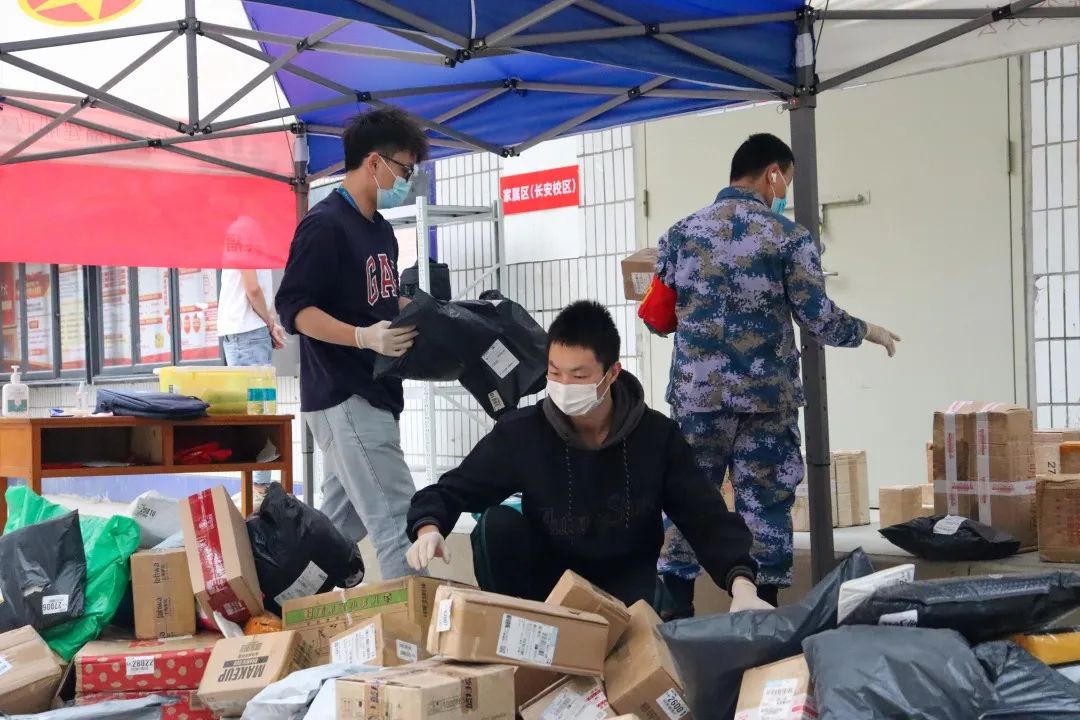 在取件過程中,工作人員嚴(yán)格按照疫情防控要求全程佩戴口罩、手套等,在長(zhǎng)安校區(qū)外對(duì)包裹多次、逐一進(jìn)行消殺,再將快遞運(yùn)到校區(qū)內(nèi),杜絕以快遞為介質(zhì)將病毒帶入校區(qū)內(nèi)的可能。