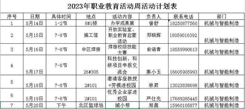 為深入學(xué)習(xí)貫徹習(xí)近平新時(shí)代中國(guó)特色社會(huì)主義思想,宣傳貫徹黨的二十大精神和習(xí)近平總書記關(guān)于職業(yè)教育的重要指示批示精神,貫徹落實(shí)新修訂的職業(yè)教育法和《關(guān)于深化現(xiàn)代職業(yè)教育體系建設(shè)改革的意見》,結(jié)合我院實(shí)際,推進(jìn)“雙高”建設(shè),全校決定組織開展職業(yè)教育活動(dòng)周工作。機(jī)械與智能制造學(xué)院緊跟學(xué)校步伐,貫徹落實(shí)活動(dòng)的開展。