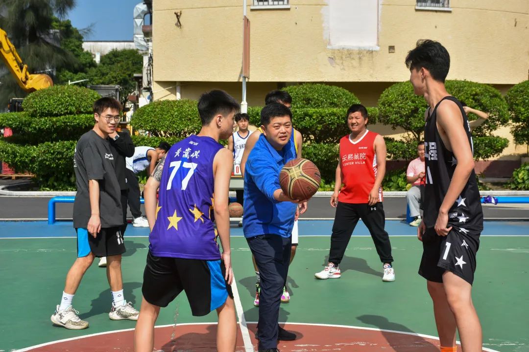 比賽隨著裁判的哨響拉開了序幕,老師同學(xué)們都干勁十足,迅速進(jìn)入狀態(tài)。此次比賽由我院黨總支書記林少丹開球,師生們同場(chǎng)競(jìng)技,嫻熟的技術(shù)和默契的配合演繹出一次次精彩瞬間,絕妙的助攻、默契的傳球、精準(zhǔn)的投籃將氣氛推向高潮。