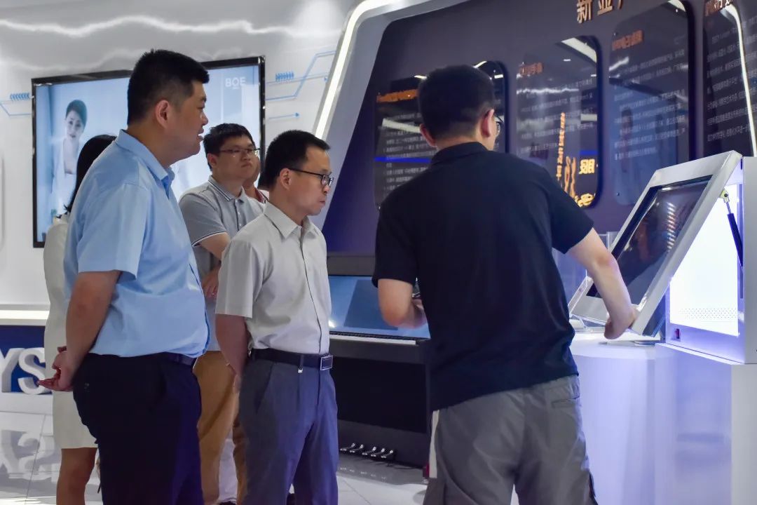 新型顯示產(chǎn)業(yè)園內(nèi)的工作人員全面深入地講解了企業(yè)的發(fā)展歷程、深耕領(lǐng)域、重要產(chǎn)品、解決方案。在其帶領(lǐng)下,我院一行參觀了智慧展示中心,并向大家展示了最新研發(fā)的新型技術(shù)。大家通過講解聆聽、圖文資料觀看、實地參觀,切身感受到企業(yè)在以創(chuàng)新為引領(lǐng)、以科研為動力、以人才為支撐,探索綠色化、低碳化、數(shù)字化轉(zhuǎn)型方面做出的改革和努力。