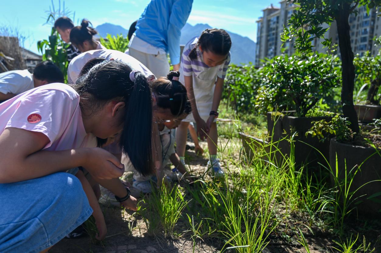 活動最后,倡導團成員們與孩子們一同來到學校小菜園開展拔草實踐。大家彎下腰細心清理雜草,汗水浸濕了衣衫,卻絲毫阻擋不了那份高漲的熱情。孩子們在勞作中親身體驗到耕耘的辛勞,更直觀地理解了 “一分耕耘,一分收獲” 的深刻含義,也進一步加深了對糧食來之不易的認知。