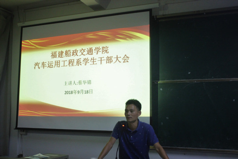 2018年9月18日,在福建船政交通職業(yè)學(xué)院北區(qū)22號(hào)樓407教室舉行了學(xué)生干部大會(huì)報(bào)告。參加報(bào)告的有汽車系教工黨員代表、16級(jí)兩委學(xué)生干部、17級(jí)全體學(xué)生干部以及18級(jí)臨時(shí)負(fù)責(zé)人。報(bào)告由汽車運(yùn)用工程系黨總支書記蔡華錦主持。