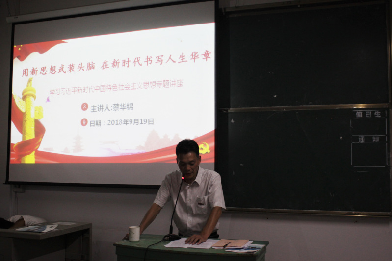 2018年9月19日,在福建船政交通職業(yè)學(xué)院北區(qū)22號(hào)樓407教室舉行了“用新思想武裝頭腦 在新時(shí)代書寫人生華章”的專題講座。參加報(bào)告的有汽車系教工黨員代表、18級(jí)各班臨時(shí)負(fù)責(zé)人以及優(yōu)秀學(xué)生代表。報(bào)告由汽車運(yùn)用工程系黨總支書記蔡華錦主持。