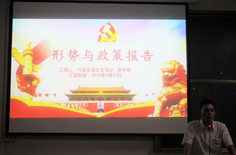 2018年9月17日,在福建船政交通職業(yè)學(xué)院北區(qū)22號樓407教室進(jìn)行了“用新思想武裝頭腦 在新時(shí)代書寫人生華章”的報(bào)告。參加了報(bào)告的有汽車系教工黨員代表以及各班臨時(shí)負(fù)責(zé)人、優(yōu)秀學(xué)生代表。報(bào)告由汽車系總支部書記蔡華錦同志主持。