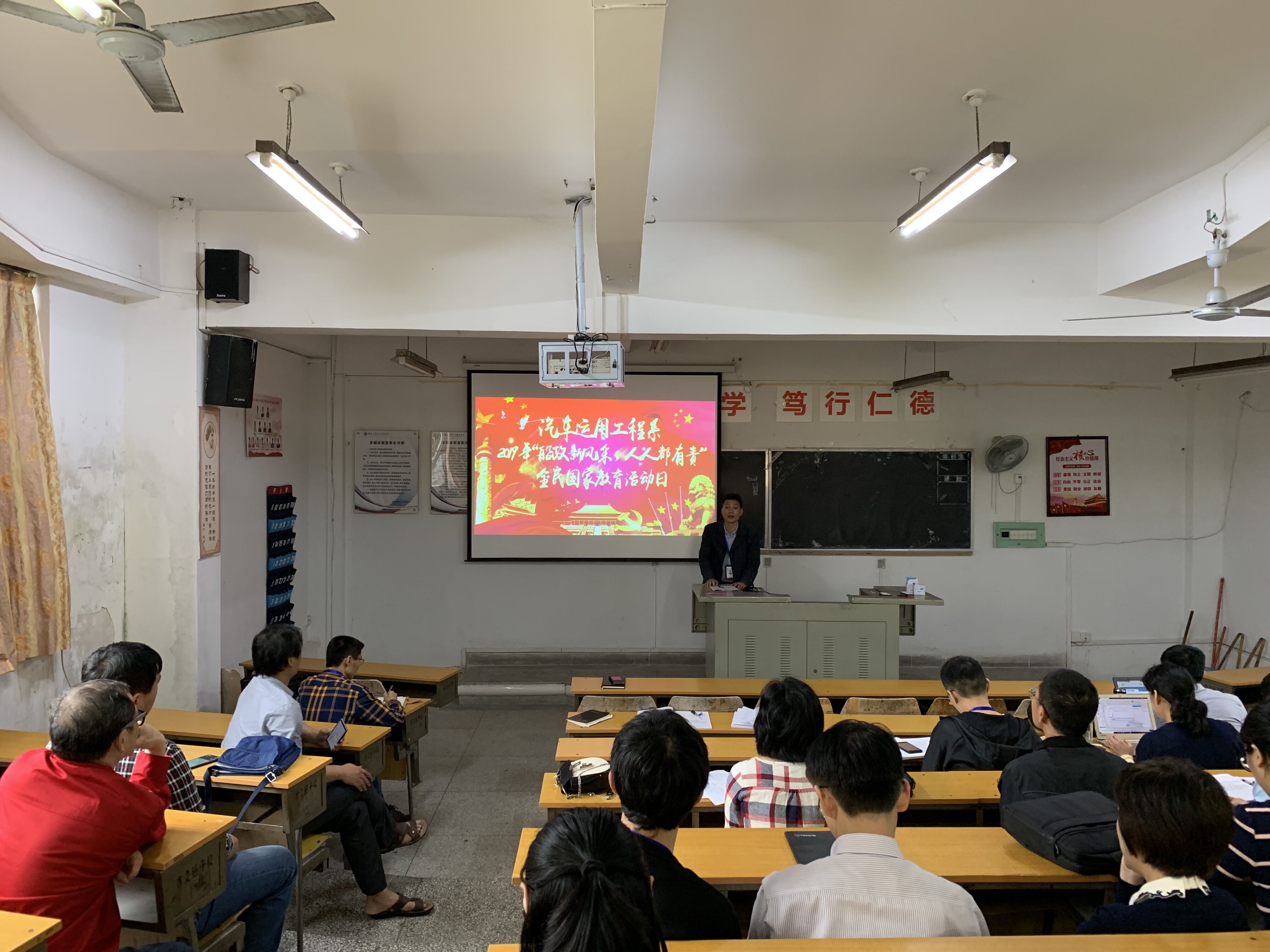 為深入學(xué)習(xí)貫徹習(xí)近平新時(shí)代中國特色社會(huì)主義思想和黨的十九大精神,堅(jiān)持總體國家安全觀,著力防范化解重大風(fēng)險(xiǎn),根據(jù)《中共福建省委教育工委辦公室關(guān)于開展2019年全民國家安全教育日活動(dòng)的通知》,汽車運(yùn)用工程系黨總支于2019年4月10日下午14:00,在汽車系第一階梯教室組織開展了“船政新風(fēng)采,人人都有責(zé)”為主題的黨日活動(dòng)。