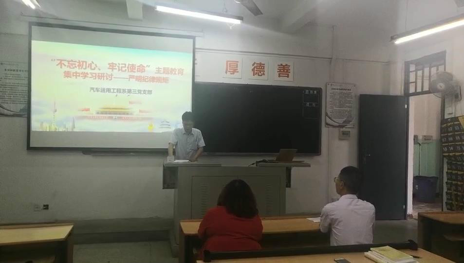 2019年10月18日,汽車系第三黨支部全體黨員,圍繞“不忘初心、牢記使命”主題教育開展第五次專題學(xué)習(xí)研討,主題為嚴(yán)明紀(jì)律。會上,陳成春老師作重點(diǎn)發(fā)言,林紹義、黃丹粟老師作互動發(fā)言。陳成春老師“黨的政治紀(jì)律是黨的各級組織和全體黨員在思想上、行動上同黨的路線方針政策保持一致的行為規(guī)范,是黨最重要的紀(jì)律。嚴(yán)守黨的政治紀(jì)律,對于鞏固黨的團(tuán)結(jié)統(tǒng)一,保持黨的先進(jìn)性和純潔性,增強(qiáng)黨的凝聚力和戰(zhàn)斗力,保證黨的路線方針政策和決策部署的貫徹落實至關(guān)重要。
