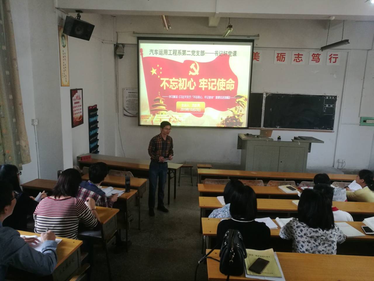 根據(jù)系總支“不忘初心、牢記使命”主題教育方案和學(xué)習(xí)研討計(jì)劃,2019年10月22日下午汽車運(yùn)用工程系第二黨支部在汽二階教室召開支部會議,以“不忘初心、牢記使命”為主題,開展了專題研討學(xué)習(xí)活動?;顒佑芍Р繒浱K慶列主持,汽車系第二黨支部全體黨員同志參加了活動。