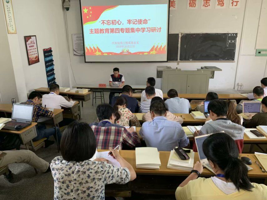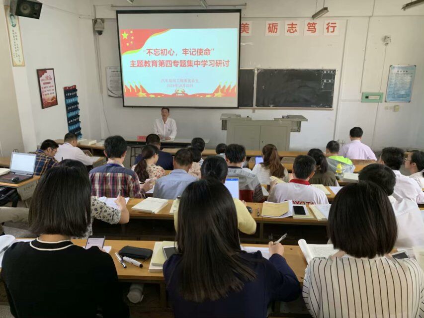 按照汽車運(yùn)用工程系黨總支“不忘初心、牢記使命”主題教育學(xué)習(xí)研討方案安排,10月22日下午,系黨總支召開主題教育第四專題集中學(xué)習(xí)研討會。系部全體教職工黨員參加了會議。