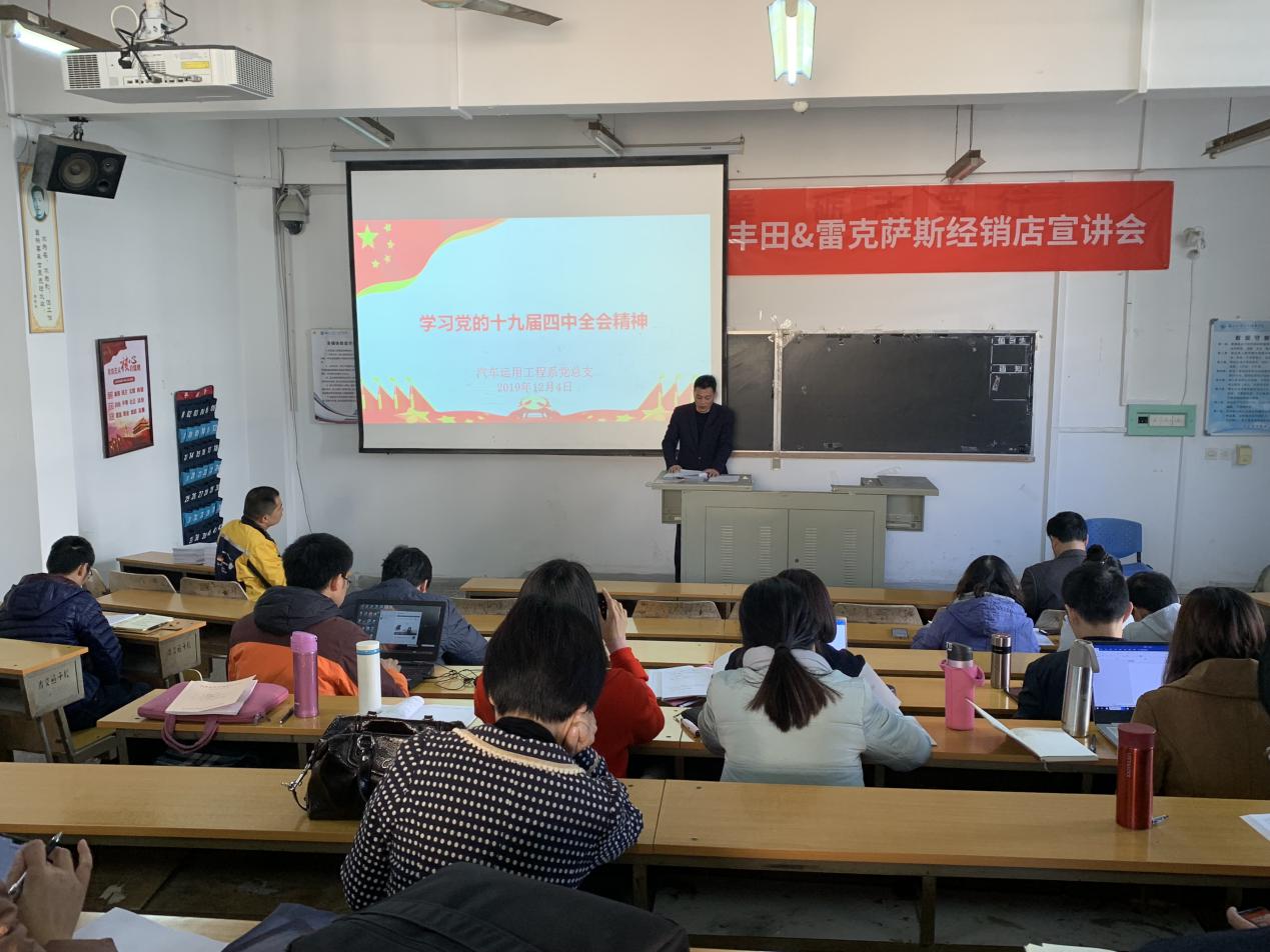 為深入學(xué)習(xí)貫徹習(xí)近平新時代中國特色社會主義思想和黨的十九屆四中全會精神,汽車運用工程系黨總支蔡華錦書記組織全體黨員于2019年12月4日在汽車系第二階梯教室學(xué)習(xí)黨的十九屆四中全會精神會議。