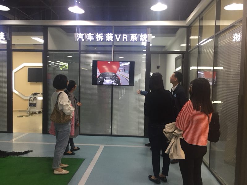 隨后,我支部黨員觀看VR+行業(yè)應(yīng)用體驗(yàn)館。黨員教師對叉車駕駛、汽車拆裝VR系統(tǒng)、焊接VR系統(tǒng)、噴涂VR系統(tǒng)等行業(yè)尖端科技現(xiàn)場體驗(yàn)。將VR技術(shù)引入課堂,可以讓學(xué)習(xí)變得直觀、形象、生動,激發(fā)學(xué)生的學(xué)習(xí)興趣和熱情;將汽車拆裝、焊接、涂裝等課程結(jié)合VR技術(shù),可以把汽車零件和焊接、涂裝過程逼真地展示在學(xué)生眼前,提高學(xué)生的學(xué)習(xí)積極性和學(xué)習(xí)效果。