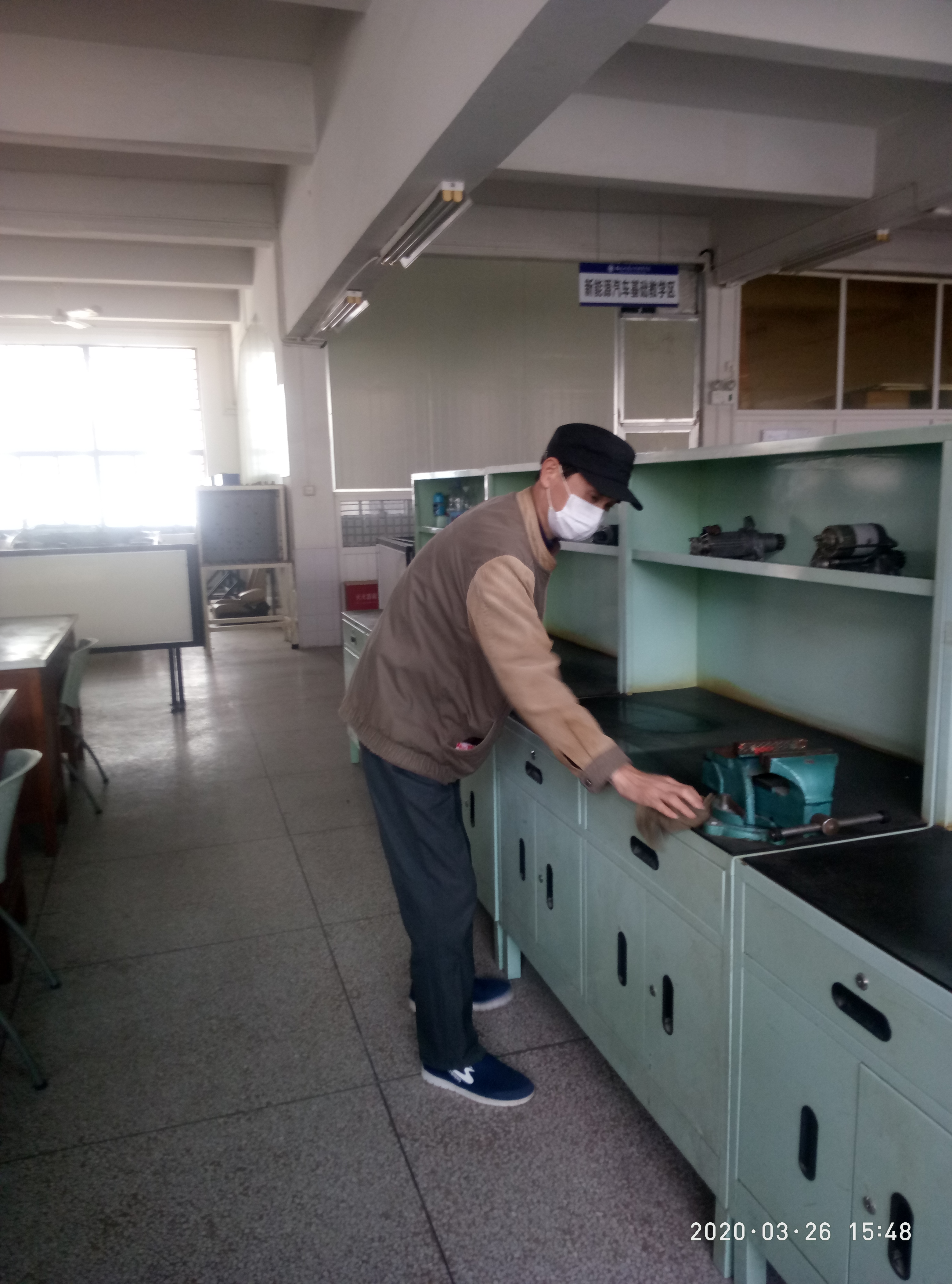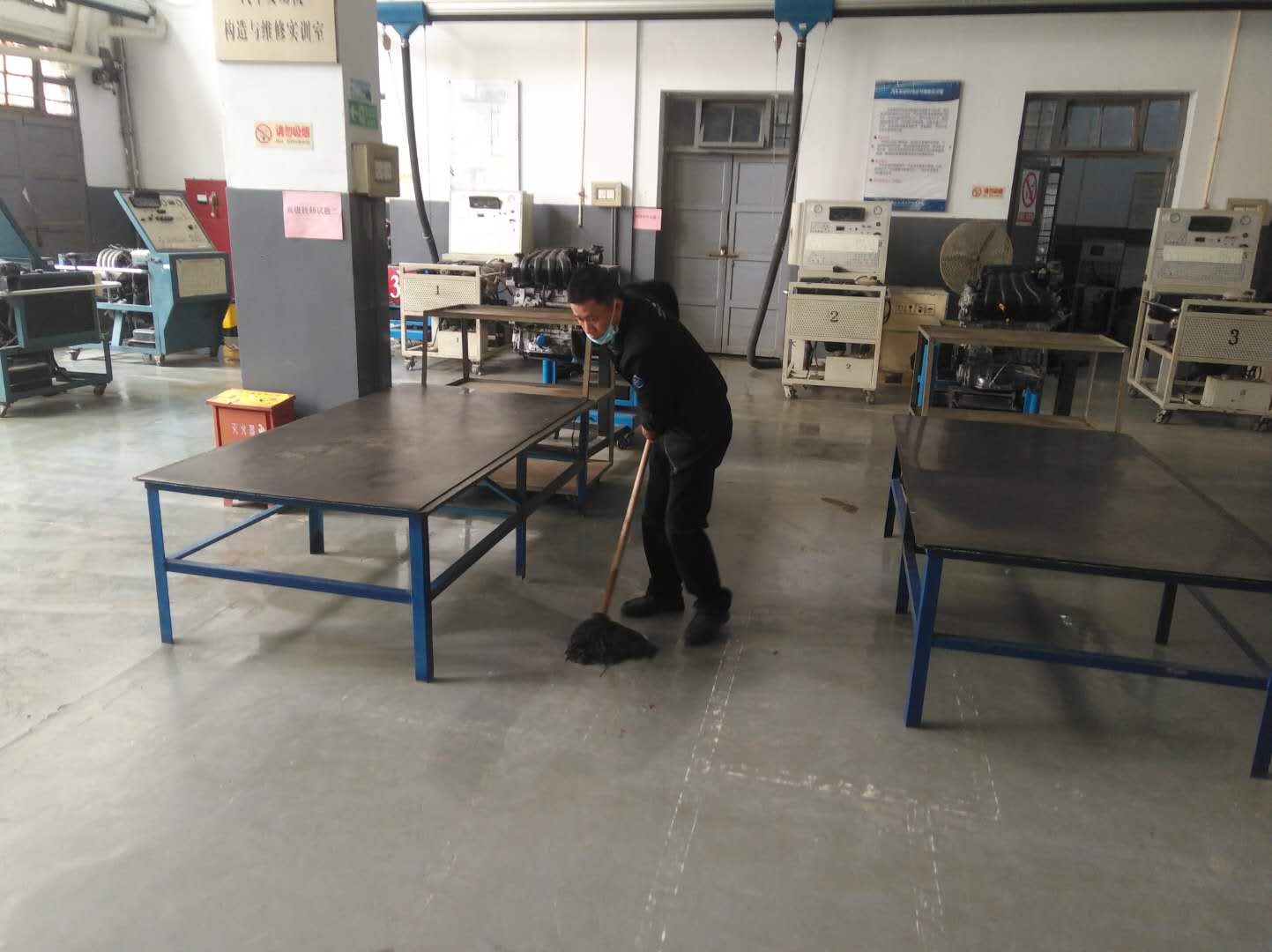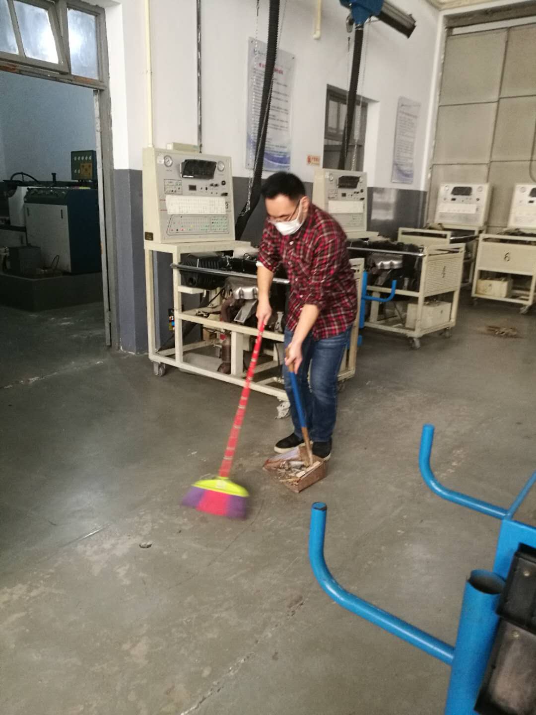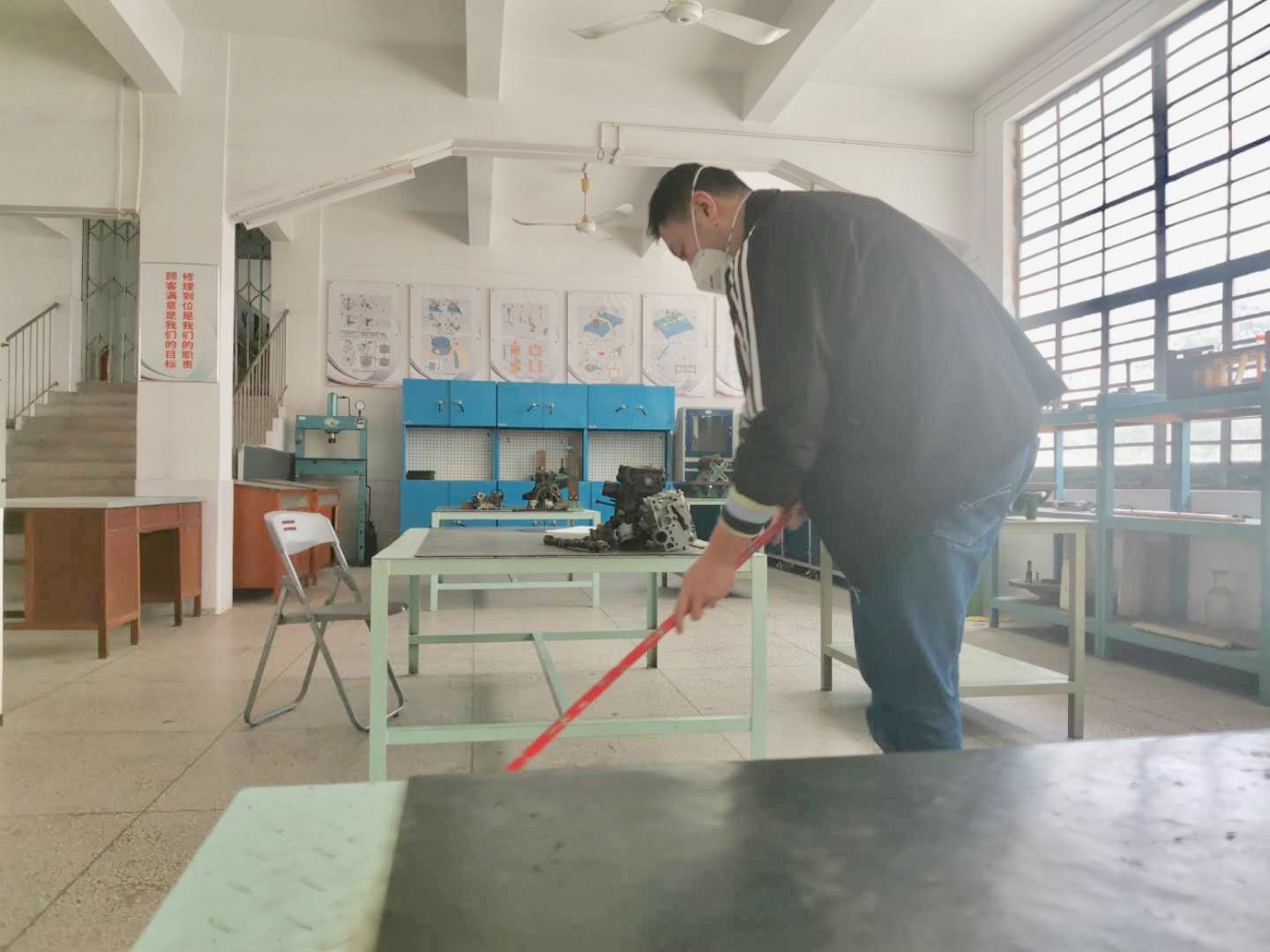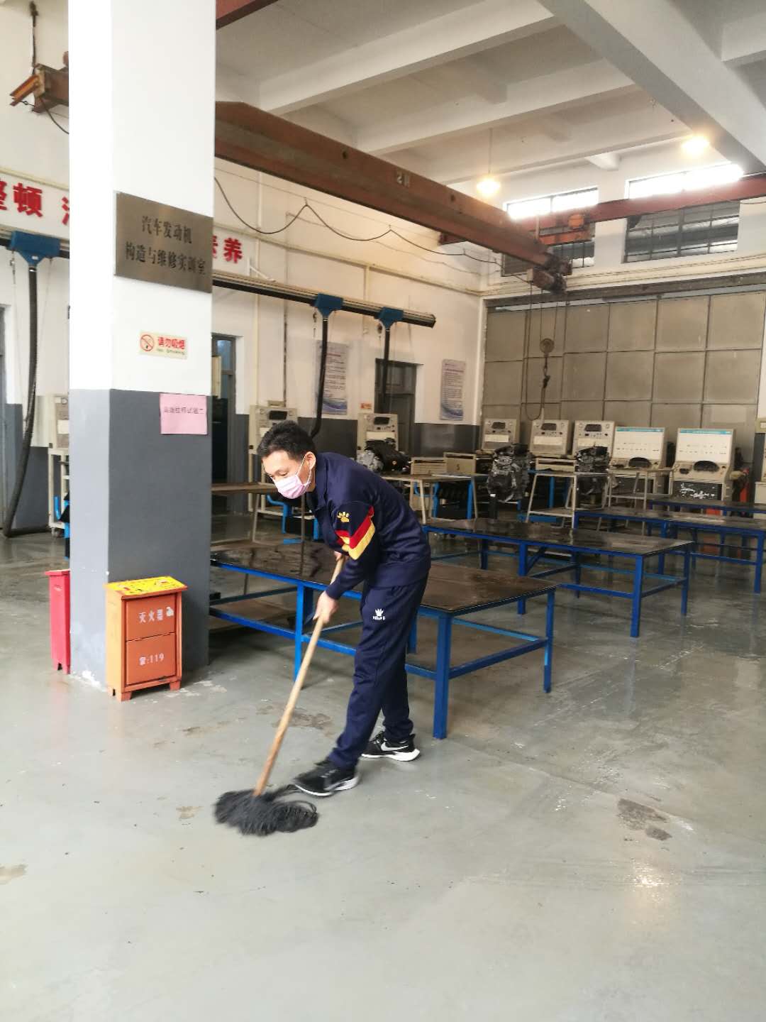 在學(xué)校值班的蔡華錦書記以身作則,拿起拖把加入了實訓(xùn)室的抗“疫”工作,與許紹炎老師、黃林火老師、陳建華老師一起認真地打掃了新能源實訓(xùn)室、發(fā)動機構(gòu)造與維修實訓(xùn)室和底盤構(gòu)造與維修實訓(xùn)室。