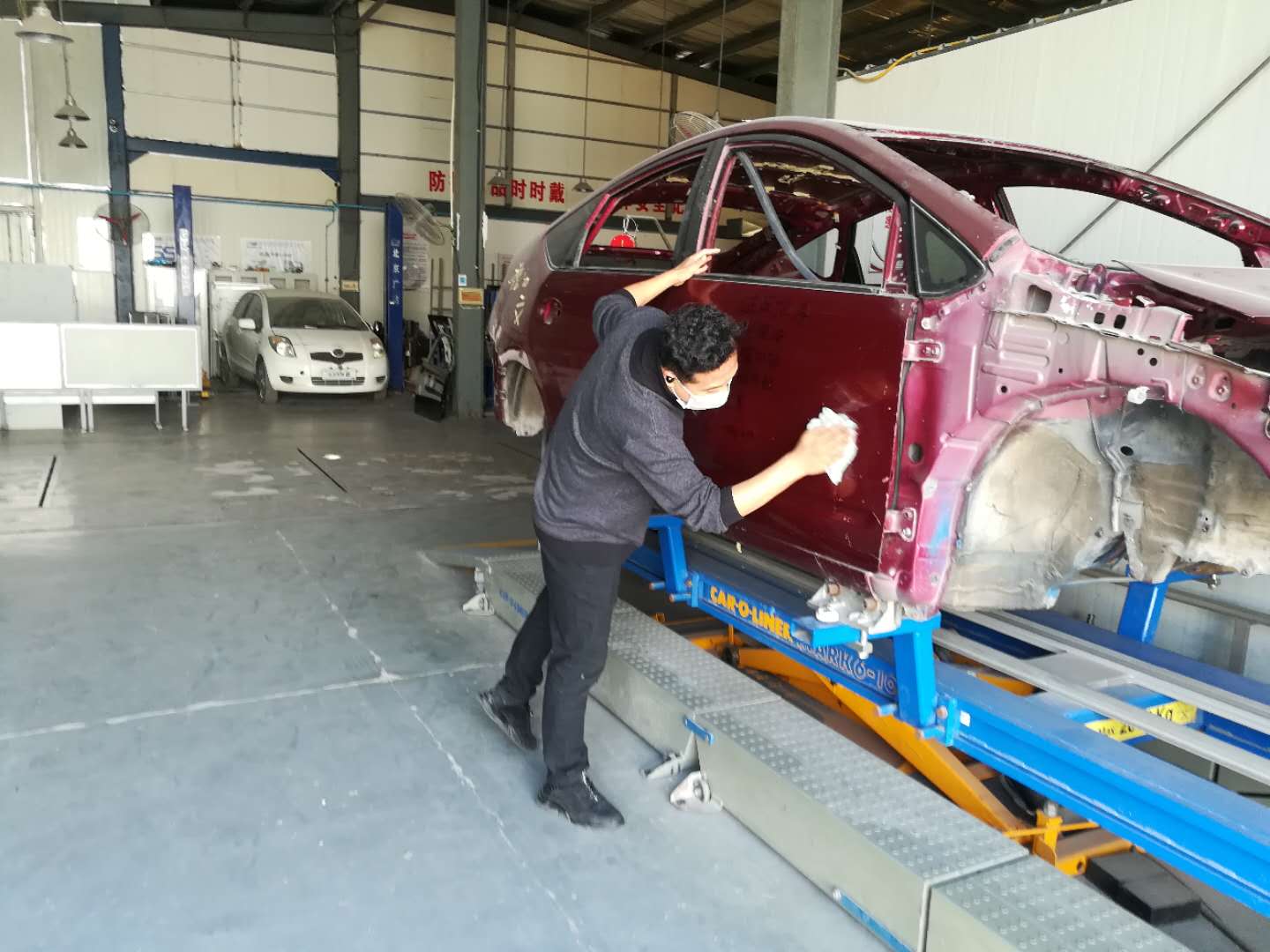 34畝地的鈑噴實訓(xùn)室,場地大、設(shè)備多、周圍又有建設(shè)工地和車流繁忙的主干道。陳星老師和葉振球老師花了整整一個早上才把這里恢復(fù)到上課狀態(tài)。