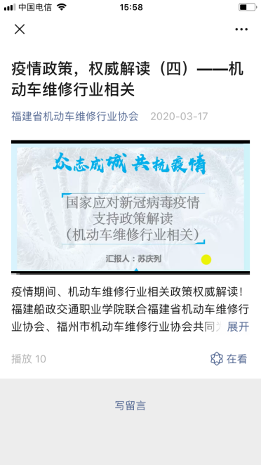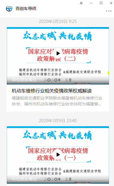 政策解讀相關(guān)視頻在福建省機(jī)動車維修行業(yè)協(xié)會公眾號、百創(chuàng)車導(dǎo)師等公眾號推出