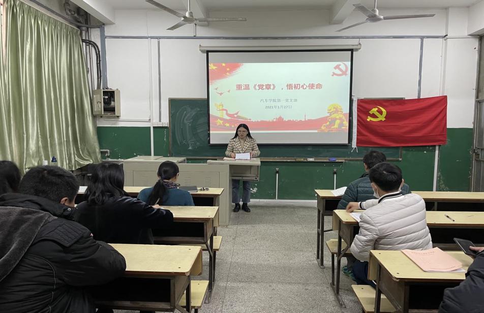為了增強(qiáng)黨員對《中國共產(chǎn)黨章程》的理解和把握,加強(qiáng)黨性修養(yǎng),促使黨員學(xué)習(xí)踐行新《中國共產(chǎn)黨章程》,爭作優(yōu)秀黨員,汽車學(xué)院第一黨支部于2021年1月27日在北區(qū)10號樓104教室開展了“重溫《中國共產(chǎn)黨章程》,悟初心使命”主題黨日活動(dòng),支部書記姚美妃同志以身作則,帶頭學(xué)習(xí)《中國共產(chǎn)黨章程》、遵守《中國共產(chǎn)黨章程》、貫徹《中國共產(chǎn)黨章程》、維護(hù)《中國共產(chǎn)黨章程》,發(fā)揮表率作用。