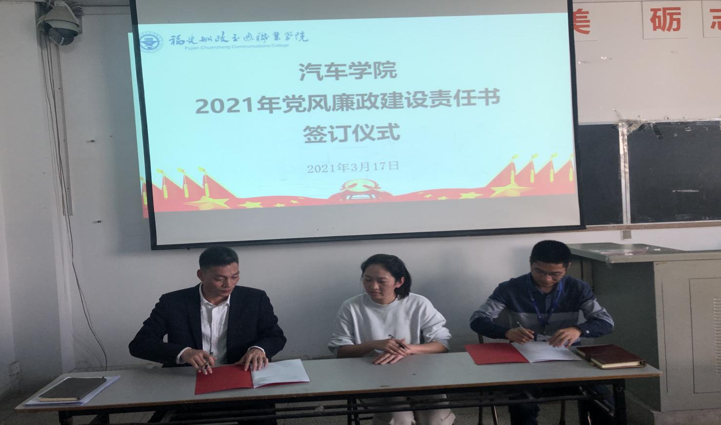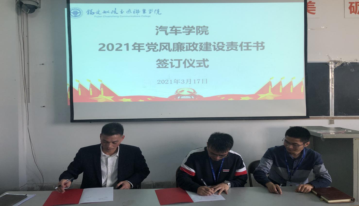 會上,汽車學院黨總支蔡華錦書記和主持工作的蘇慶列副院長分別與系辦公室主任陳方銳、分團委書記余晨煒、教研室主任何建、朱劍寶、梁霖鋒、李智強及實訓中心主任黃知秋等6位同志現(xiàn)場簽訂了《汽車學院黨風廉政責任書》,進一步明確科室負責人責任。