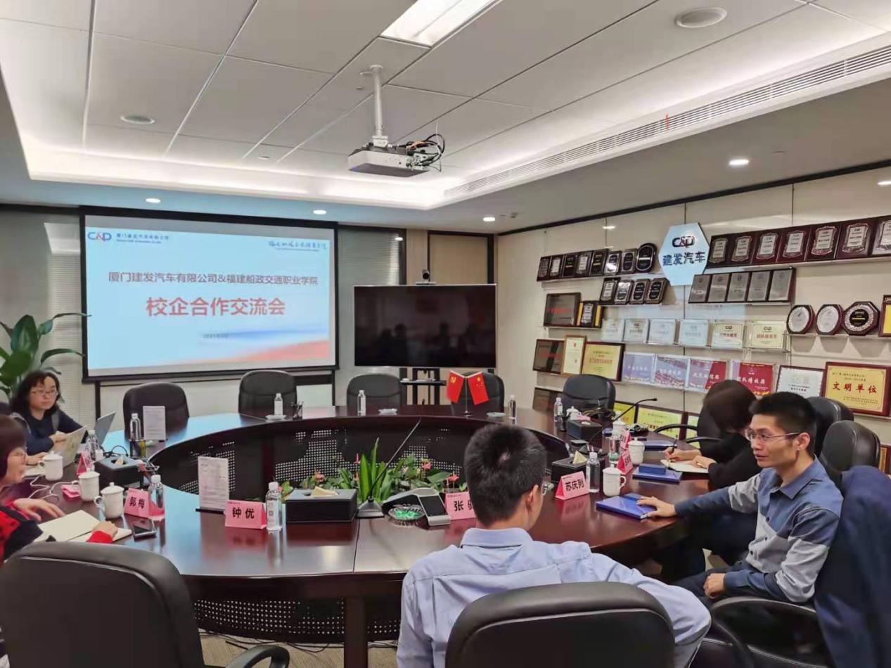 蘇慶列副院長一行首先前往廈門建發(fā)汽車有限公司,與建發(fā)汽車人力資源總監(jiān)張弛、黨群工作部總經(jīng)理孫梅、校企合作負責人吳雨蔣、黃瑞琦等人開展校企合作交流會,校企雙方就6年來的合作成果進行了總結,對未來合作方向做出規(guī)劃和展望。