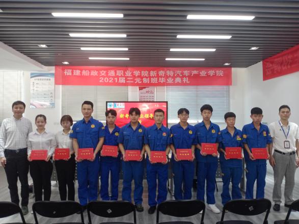 新奇特汽車產(chǎn)業(yè)學(xué)院是我院與新奇特車業(yè)服務(wù)股份有限公司于2018年起開展合作,雙方積極探索混合所有制學(xué)院辦學(xué)模式,開啟“二元制”聯(lián)合辦學(xué),達(dá)成了產(chǎn)學(xué)研的深度合作。三年來,校企合作碩果累累。目前“二元制”辦學(xué)已成功舉辦三屆,共培養(yǎng)汽車檢測與維修技術(shù)專業(yè)和汽車營銷與服務(wù)專業(yè)“二元制”學(xué)生130余人;雙方共同合作開發(fā)了科研項目2項;集聚品質(zhì)提升,助力福建新奇特車業(yè)服務(wù)股份有限公司獲批福建省首批產(chǎn)教融合型企業(yè)。通過多形式、深層次緊密合作,進(jìn)一步整合校企資源,深化產(chǎn)教融合,攜手同行,不斷書寫高素質(zhì)技術(shù)技能型人才培養(yǎng)新篇章。