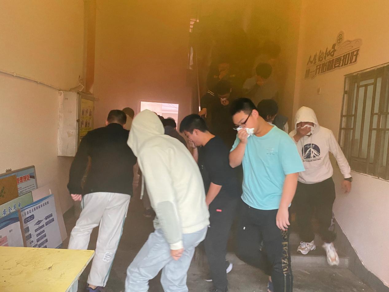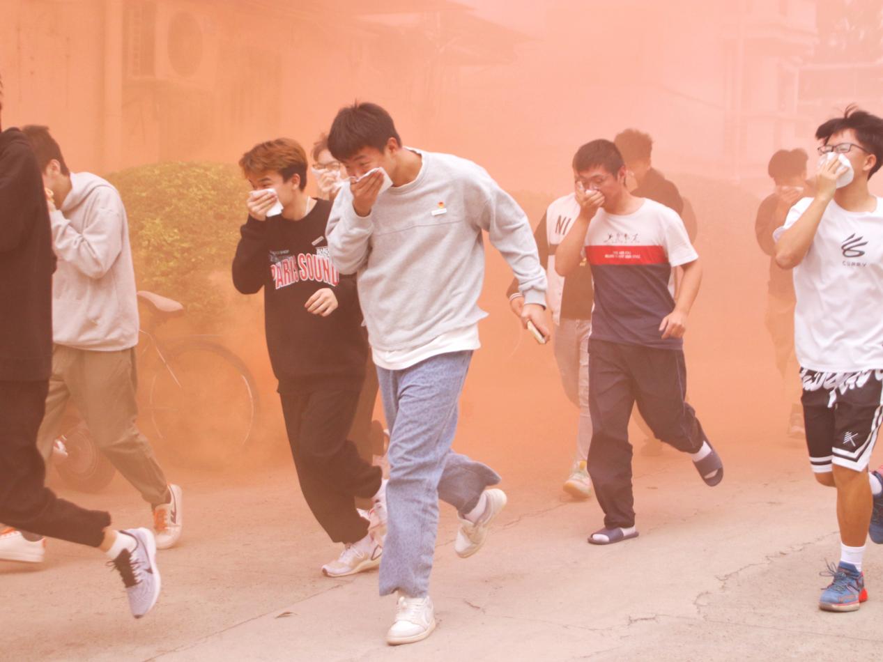 在北區(qū)24號汽車學(xué)院學(xué)生宿舍樓,一陣急促的火情報警鈴響起,汽車學(xué)院學(xué)生在志愿者的引導(dǎo)下,彎著腰,用濕手帕、濕毛巾等捂住口鼻,沿著疏散通道快速撤離到指定的安全區(qū)域,同學(xué)們迅速整隊并核查人數(shù),整個應(yīng)急演練活動有序、緊張、安全、高效,達到了預(yù)期效果。