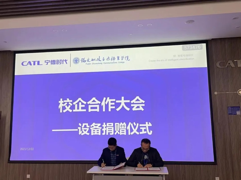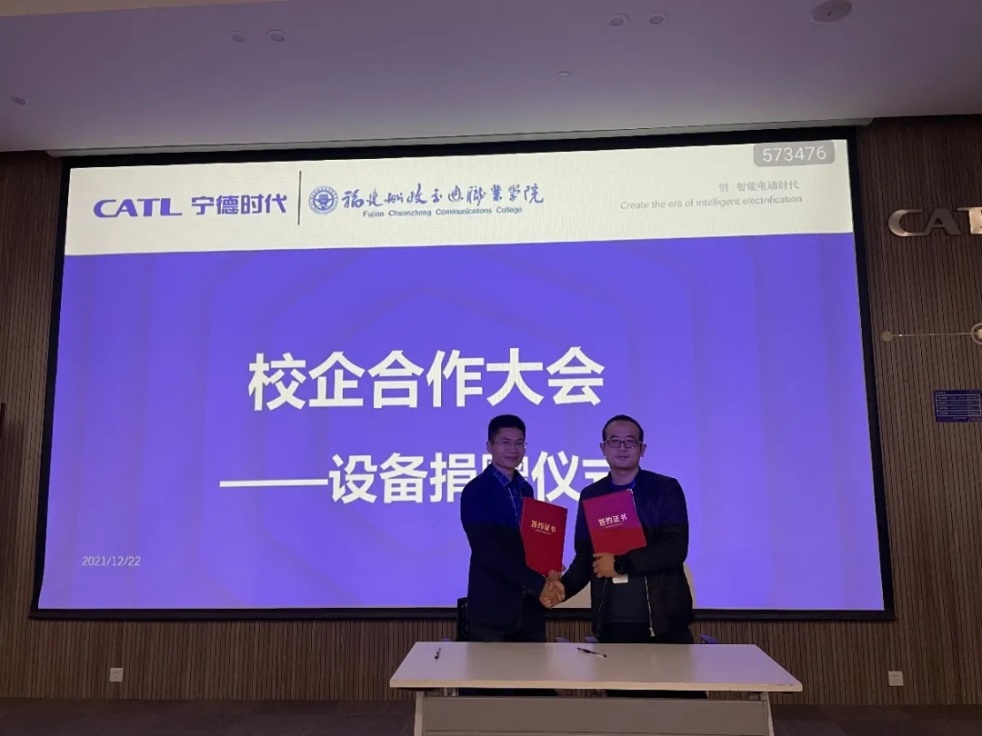蘇慶列副院長代表我們學(xué)院與寧德時代代表曹彬經(jīng)理進(jìn)行了寧德時代捐贈設(shè)備的簽約儀式,寧德時代將會捐贈一臺價值100萬元的模切機(jī)給我們學(xué)院。該設(shè)備投入教學(xué)后,將會完善我們學(xué)院的實(shí)訓(xùn)室條件,使面向?qū)幍聲r代的訂單班學(xué)生可以提前學(xué)習(xí)并操作企業(yè)的生產(chǎn)設(shè)備,畢業(yè)后實(shí)現(xiàn)與企業(yè)無縫對接。