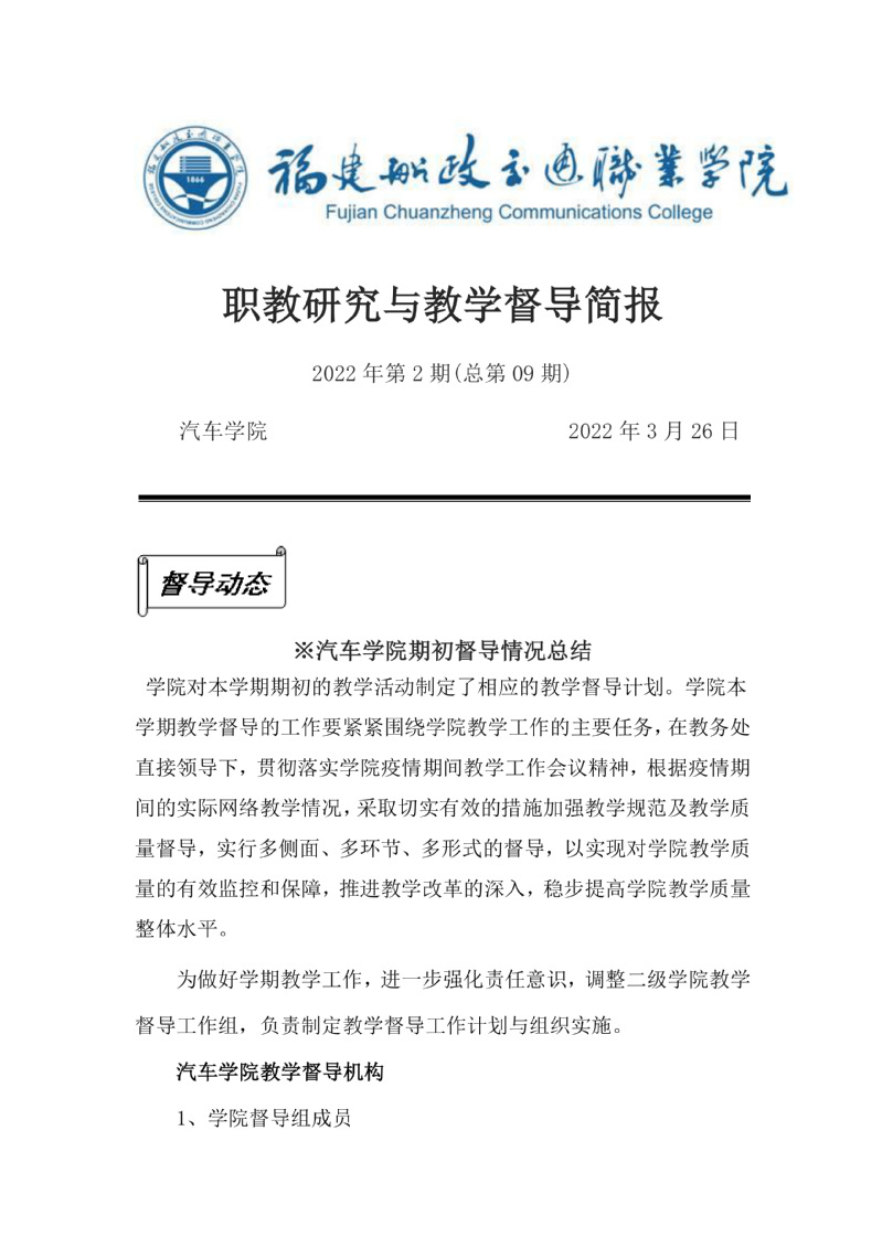2021-2022-2學期汽車學院教學督導簡報第1期