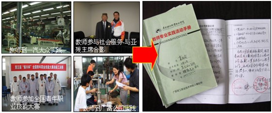 推行“教師專業(yè)實(shí)踐活動(dòng)手冊(cè)”管理。運(yùn)用“互聯(lián)網(wǎng)+手冊(cè)”,完善專任教師企業(yè)實(shí)踐的信息化管理。實(shí)施教師專業(yè)實(shí)踐目標(biāo)管理、過(guò)程控制、校企雙向考核,保障教師“領(lǐng)著任務(wù)去,帶著成果回”,真正走到企業(yè)生產(chǎn)服務(wù)一線頂崗工作,駐企業(yè)從事產(chǎn)品研發(fā)和技術(shù)改造,在為企業(yè)創(chuàng)造價(jià)值中升級(jí)專業(yè)能力。