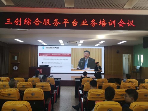 習(xí)近平總書記在全國教育大會強調(diào),要“以創(chuàng)造之教育培養(yǎng)創(chuàng)造之人才,以創(chuàng)造之人才造就創(chuàng)新之國家”,把創(chuàng)新創(chuàng)業(yè)教育貫穿于人才培養(yǎng)全過程,讓創(chuàng)新的基因根植于學(xué)生之中,培養(yǎng)造就更好適應(yīng)和引領(lǐng)創(chuàng)新發(fā)展的各類人才。因此,學(xué)校創(chuàng)新創(chuàng)業(yè)教育的體系構(gòu)建、創(chuàng)新創(chuàng)業(yè)師資培養(yǎng)就尤為迫切和重要。2020年10月28號,由教務(wù)處、創(chuàng)新創(chuàng)業(yè)學(xué)院牽頭,組織召開三創(chuàng)平臺業(yè)務(wù)培訓(xùn)會議,分管創(chuàng)新創(chuàng)業(yè)的二級學(xué)院領(lǐng)導(dǎo)及聯(lián)系人、專業(yè)教研室主任、創(chuàng)新創(chuàng)業(yè)指導(dǎo)教師、大學(xué)生就業(yè)創(chuàng)業(yè)教研室教師參加會議。