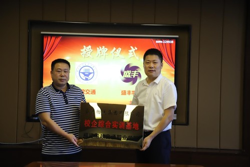 圖2 經(jīng)濟(jì)與管理學(xué)院副院長與盛豐物流集團(tuán)人事部總經(jīng)理授牌