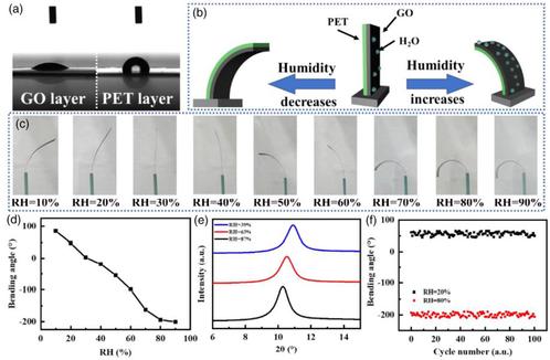 近年來,智能致動(dòng)器由于其驅(qū)動(dòng)方式多樣、形變類型多樣、應(yīng)用廣泛等特點(diǎn),已成為智能材料的研究熱點(diǎn)。然而,只能由單一刺激驅(qū)動(dòng)的傳統(tǒng)雙層致動(dòng)器的應(yīng)用領(lǐng)域受到極大限制。我校機(jī)械與智能制造學(xué)院研究團(tuán)隊(duì)致力于智能材料和智能制造領(lǐng)域相關(guān)裝備和器件的研發(fā)和應(yīng)用研究工作,依托省級(jí)智能裝備應(yīng)用技術(shù)協(xié)同創(chuàng)新中心,聯(lián)合福州大學(xué)、福建工程學(xué)院、廈門理工學(xué)院科研團(tuán)隊(duì)開展了諸多有意義的研究工作。本次公開發(fā)表的研究基于氧化石墨烯(GO)和聚對(duì)苯二甲酸乙二醇酯(PET)復(fù)合材料的雙響應(yīng)和雙向彎曲致動(dòng)器,旨在開發(fā)多響應(yīng)執(zhí)行器以拓寬驅(qū)動(dòng)器的應(yīng)用領(lǐng)域。
