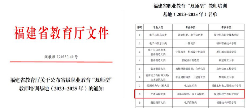 7月12日,福建省教育廳印發(fā)《關(guān)于公布省級(jí)職業(yè)教育“雙師型”教師培訓(xùn)基地(2023-2025年)的通知》,我校依托航海技術(shù)高水平專業(yè)群,獲批福建省職業(yè)教育“雙師型”教師培訓(xùn)基地(2023-2025年),開展水上運(yùn)輸類的“雙師型”教師培訓(xùn)與實(shí)踐。福建省職業(yè)教育“雙師型”教師培訓(xùn)基地是我省職業(yè)院校教師發(fā)展體系的重要組成部分,是承擔(dān)省級(jí)及以上職業(yè)院校教師素質(zhì)提高計(jì)劃培訓(xùn)任務(wù)的重要載體。