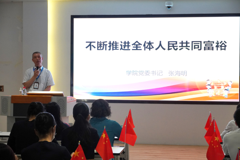 5月24日上午,校黨委書記張海明在圖書館三樓黨建館為2021級軟件技術1.2班學生講授《不斷推進全體人民共同富?!穼n}形勢與政策課。