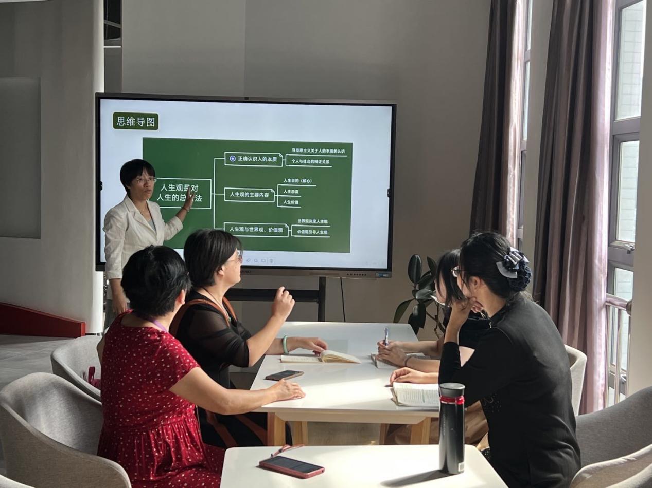 李春香老師就“人生觀的主要內(nèi)容”中,關(guān)于“如何認(rèn)識(shí)人生目的是人生觀的核心”這一教學(xué)重點(diǎn)內(nèi)容展開(kāi)片段教學(xué)。參與教研活動(dòng)的各位老師還針對(duì)本章節(jié)重難點(diǎn)問(wèn)題分享了自己的教學(xué)經(jīng)驗(yàn)與案例,教研活動(dòng)在教師們熱烈討論、分享交流中圓滿(mǎn)結(jié)束。